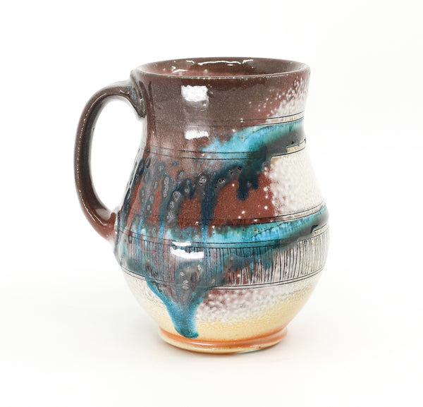 This mug is perfect for your every day coffee, tea or anything else you like to drink! I threw it on the potters' wheel in porcelain. I then hand carved and decorated it with underglaze, terra sigillata, and glaze. I soda fired it to cone 10.