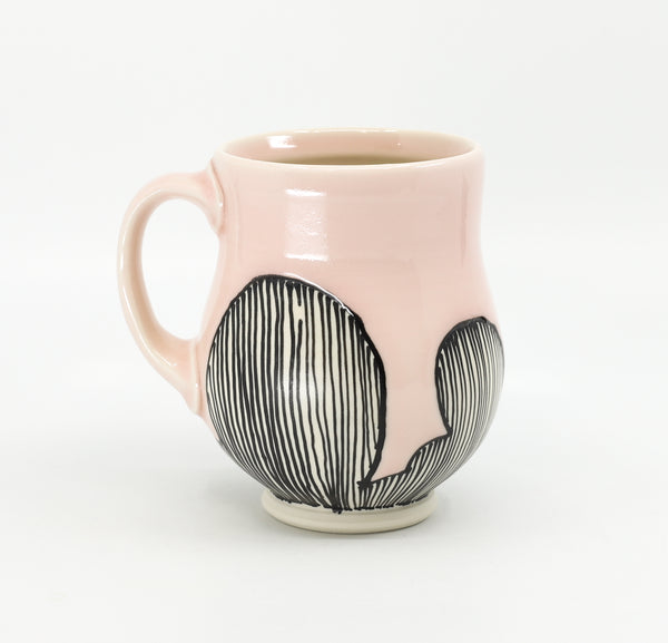 This mug is perfect for your every day coffee, tea or anything else you like to drink! I threw it on the potters' wheel in porcelain. I hand drew the pattern in underglaze, then glazed it and fired it to cone 6.