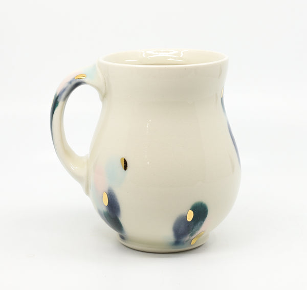 This mug is perfect for your every day coffee, tea or anything else you like to drink! I threw it on the potters' wheel in porcelain. I hand drew the pattern in underglaze, then glazed it and fired it to cone 6.