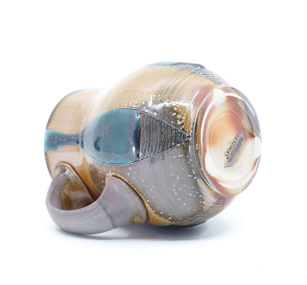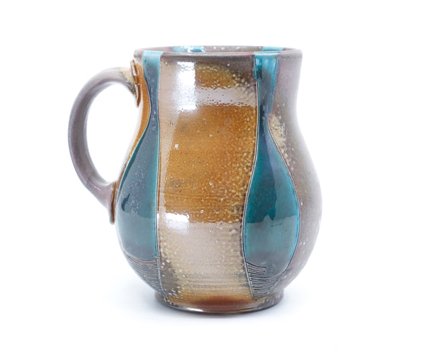 This mug is perfect for your every day coffee, tea or anything else you like to drink! I threw it on the potters' wheel in b mix clay. I then hand carved and decorated it with underglaze and glaze. It is soda fired to cone 10.