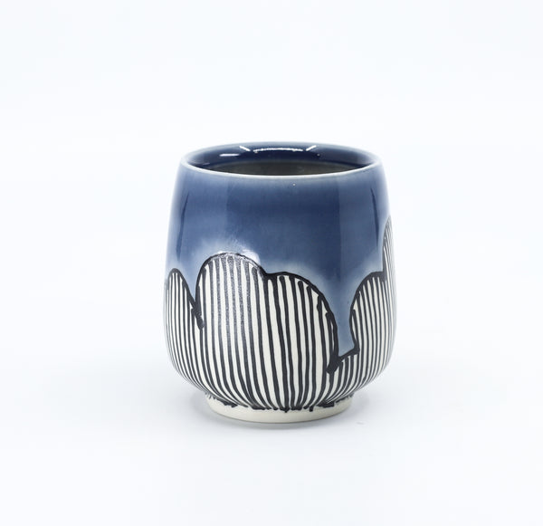 This cup* is perfect for your five o'clock cocktail, juice, tea or anything else you like to drink! I threw and trimmed the cup on the potters wheel. I then hand drew the design in black underglaze and glazed it in a food safe glaze.