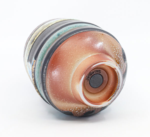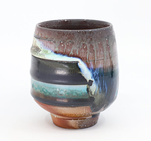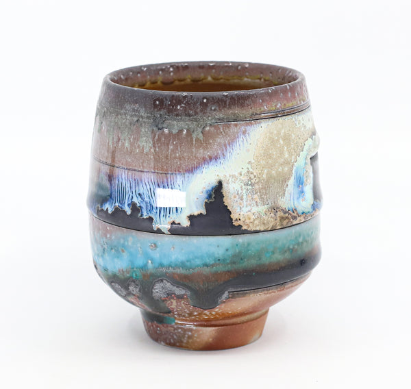I threw this cup on the potters' wheel with b-mix clay, then hand carved it. I inlaid it with underglaze, decorated it with glaze, and soda fired it to cone 10.