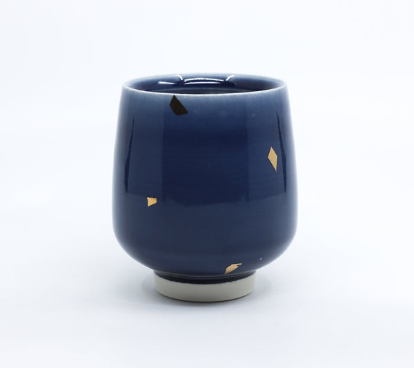 This is your perfect everyday cup for tea, juice, or a cocktail! I threw this cup on the wheel in porcelain, glazed it in a food safe glaze, and decorated it with 22K gold luster decals. It holds approximately 8 oz.