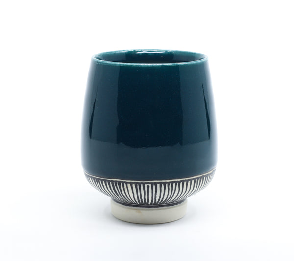 This is your perfect everyday cup for tea, juice, or a cocktail! I threw this cup on the wheel in porcelain, glazed it in a food safe glaze, and decorated it with 22K gold luster decals. It holds approximately 8 oz.