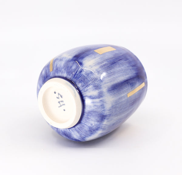 This cup is perfect for your five o'clock cocktail, juice, tea or anything else you like to drink! I threw and trimmed the cup on the potters wheel. I then hand glazed the pattern. After glaze firing, I added 22K gold luster to the surface and fired it a third time to adhere the gold.