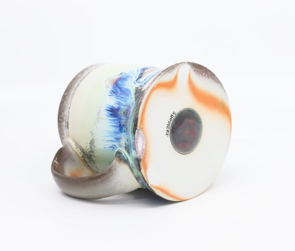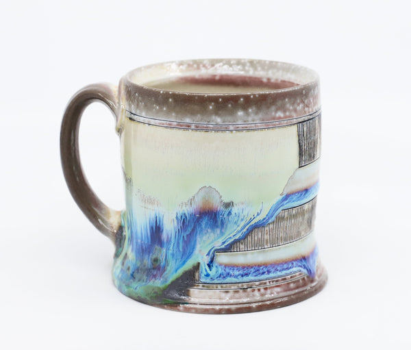 This mug is perfect for your every day coffee, tea or anything else you like to drink! I threw it on the potters' wheel in porcelain. I then hand carved and decorated it with underglaze and glaze. I soda fired it to cone 10.