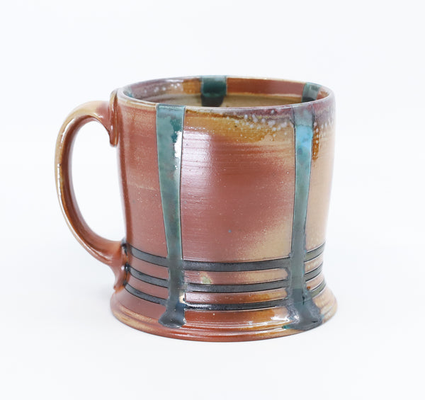 This mug is perfect for your every day coffee, tea or anything else you like to drink! I threw it on the potters' wheel in b-mix clay. I then hand carved and decorated it with underglaze inlay, terra sigillata and glaze. I soda fired it to cone 10.