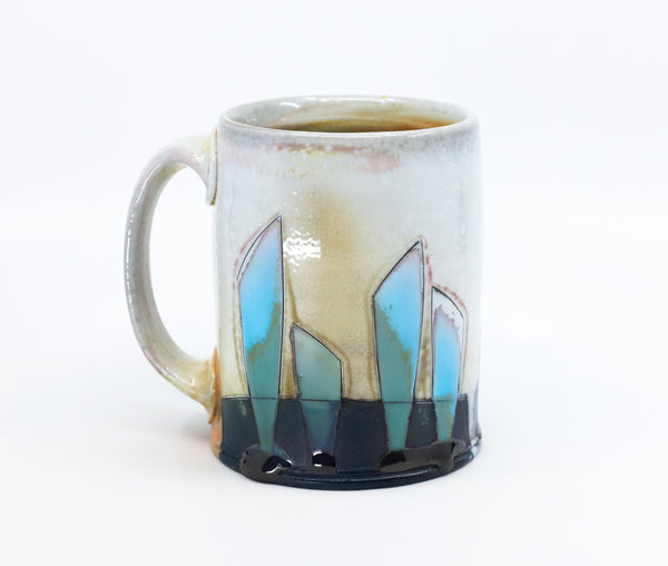 This mug is perfect for your every day coffee, tea or anything else you like to drink! I threw it on the potters' wheel in porcelain. I then hand carved and decorated it with underglaze inlay, terra sigillata and glaze. I soda fired it to cone 10.