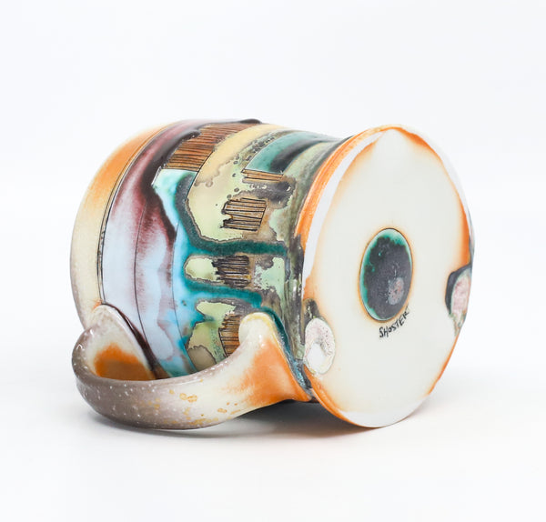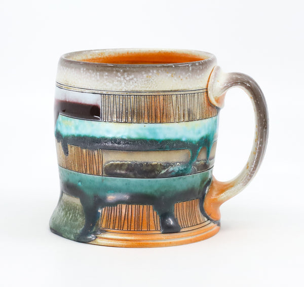 This mug is perfect for your every day coffee, tea or anything else you like to drink! I threw it on the potters' wheel in porcelain. I then hand carved and decorated it with underglaze and glaze. I soda fired it to cone 10.