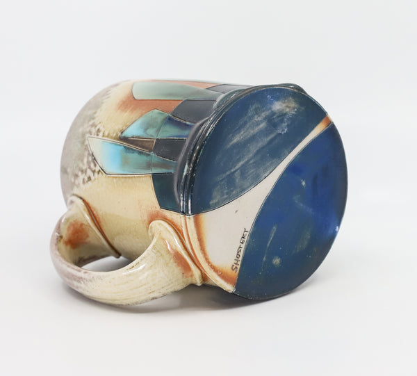 This mug is perfect for your every day coffee, tea or anything else you like to drink! I threw it on the potters' wheel in b-mix clay. I then hand carved and decorated it with underglaze and glaze. I soda fired it to cone 10.