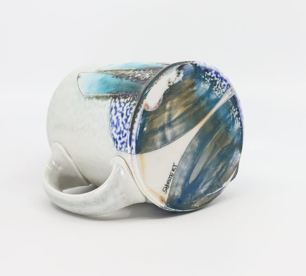 This mug is perfect for your every day coffee, tea or anything else you like to drink! I threw it on the potters' wheel in porcelain. I then hand carved and decorated it with underglaze and glaze. I soda fired it to cone 10.