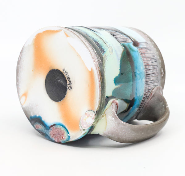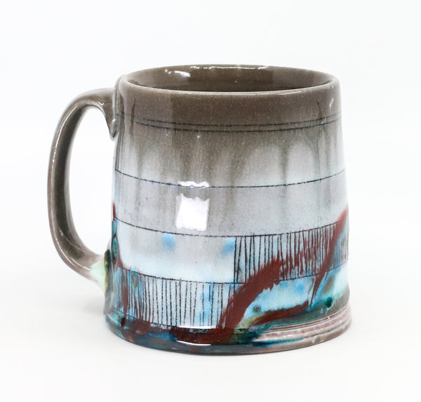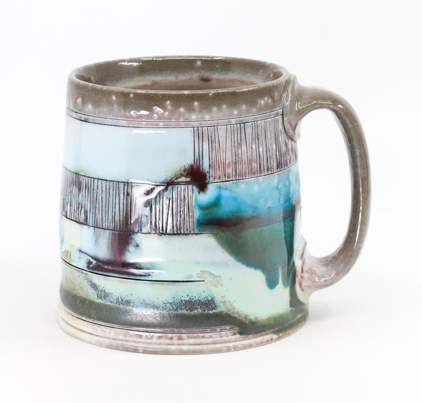 This mug is perfect for your every day coffee, tea or anything else you like to drink! I threw it on the potters' wheel in porcelain. I then hand carved and decorated it with underglaze and glaze. I soda fired it to cone 10.
