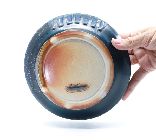 I threw it on the potters' wheel in b-mix clay. I then hand carved and decorated it with underglaze, terra sigillata, and glaze. It is soda fired to cone 10.