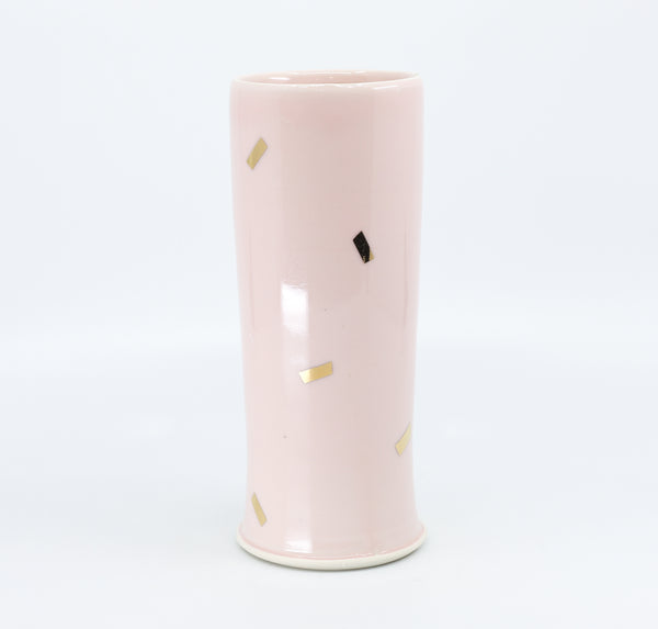 This tumbler is perfect for your every day water, ice tea, or anything else you like to drink! It also works quite nicely as a small vase. I threw it on the potters' wheel in porcelain. I glazed it in a food safe glaze, and finished it with 22K gold luster.