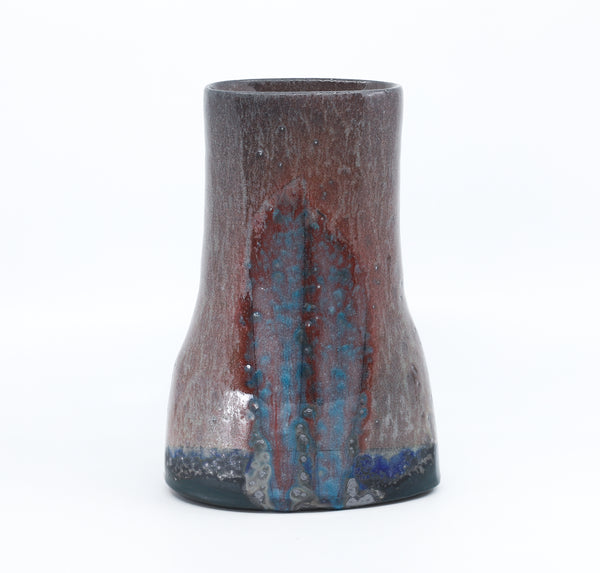This vase is perfect for display in any room of your home! I threw it on the potters' wheel in porcelain and altered it. I then hand carved and decorated it with underglaze, terra sigillata and glaze. I soda fired it to cone 10.